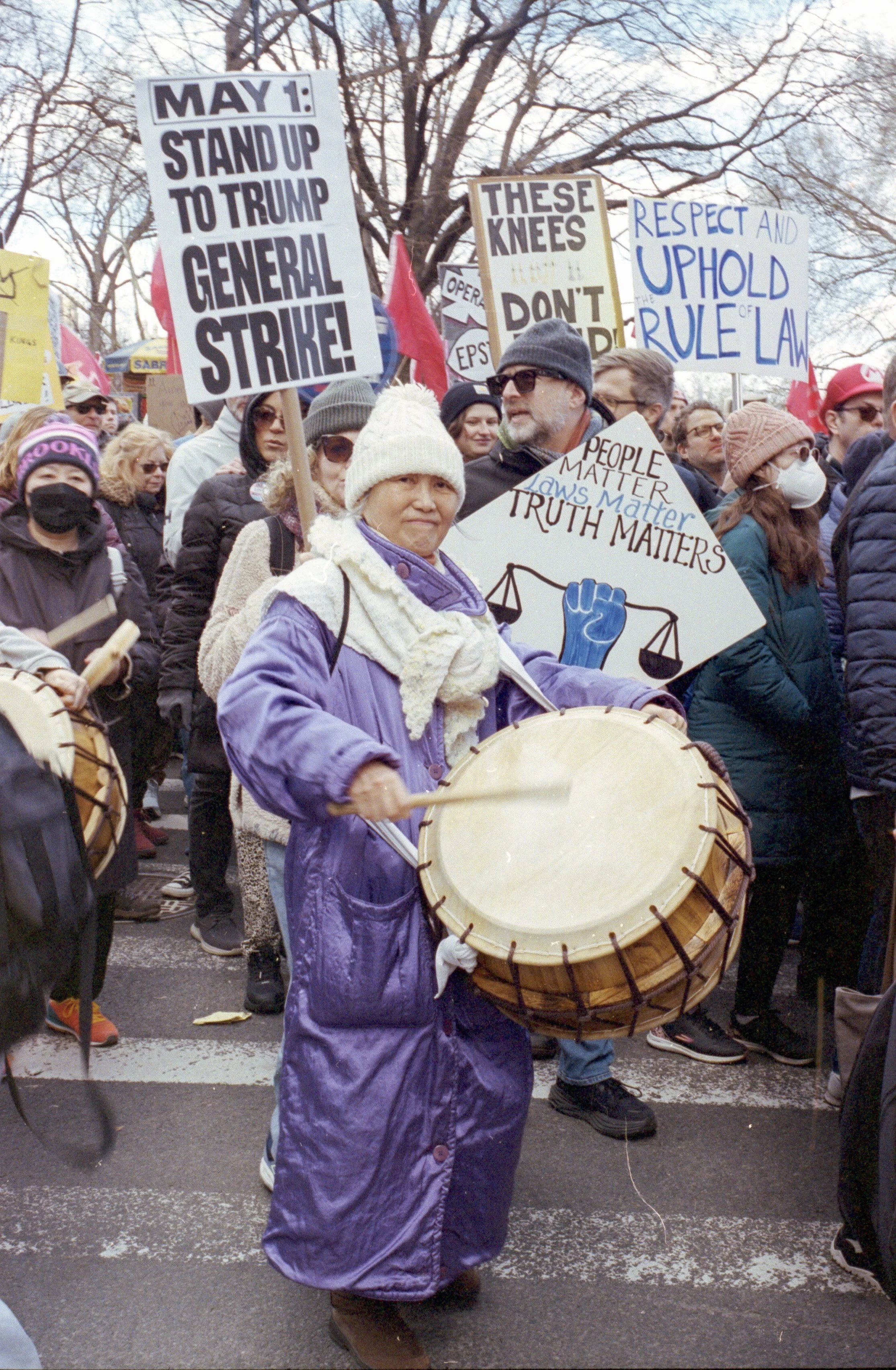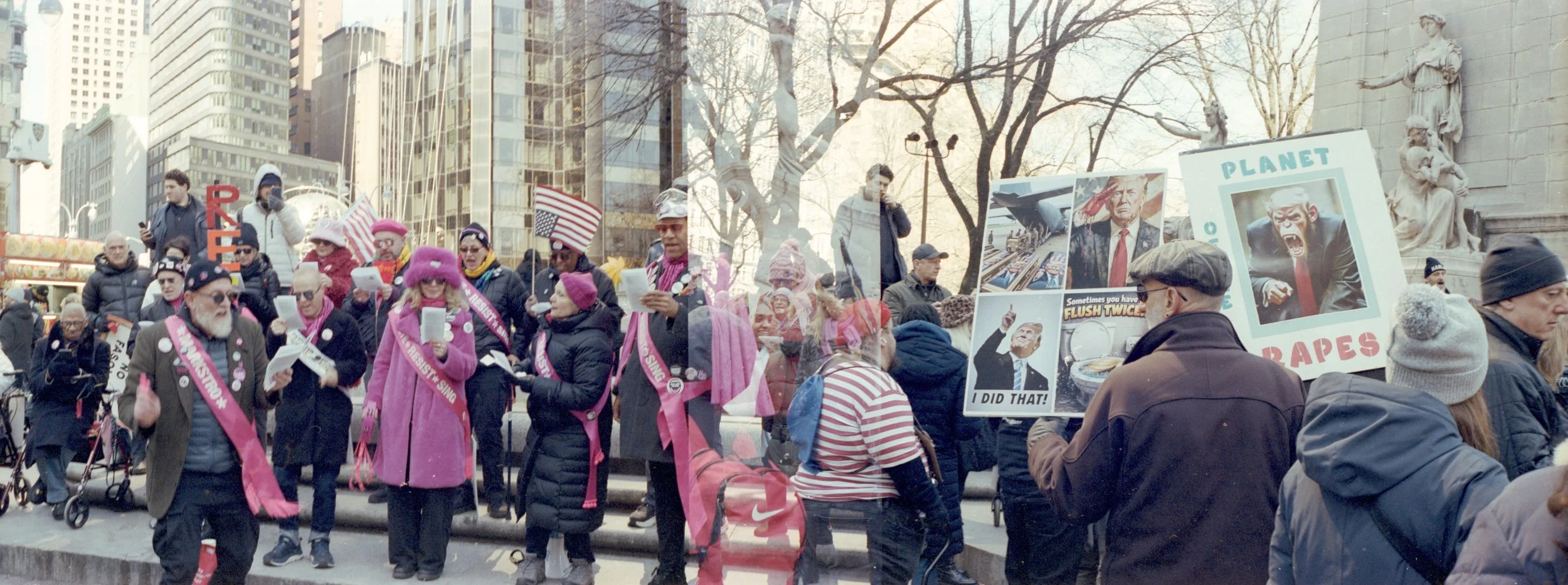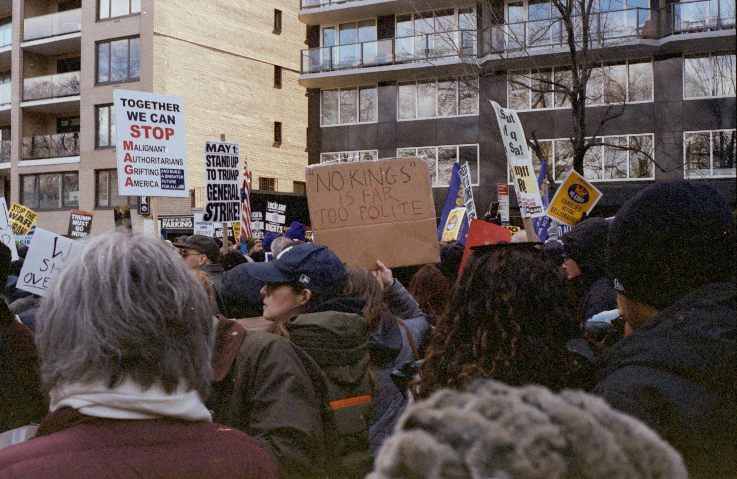 Not only did I set out to take part in the demonstration against Trump and authoritarianism but to document it. In tow I had my trusty Minolta X-370 and a boatload of film. I ended up shooting multiple rolls of Kodak Portra 400 and a roll of Fujifilm 200. But really, this post isn’t gonna spend much time talking about film stocks or techniques. I have other things on my mind.