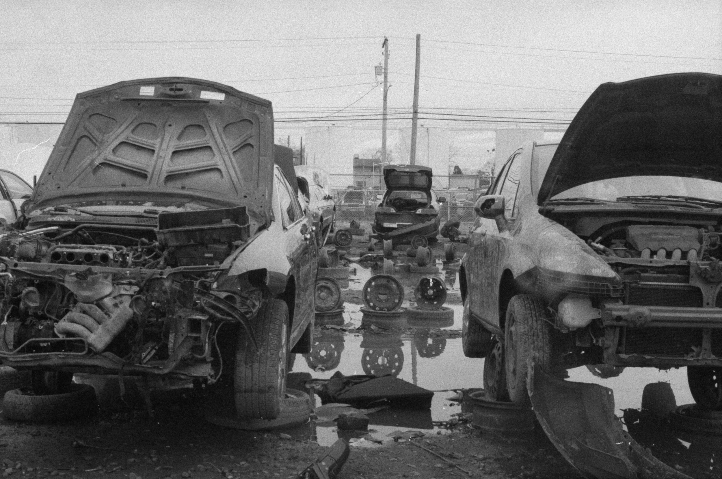 There were about a dozen exposures left on the roll of expired Kodak T-Max 400 after my little trip to Reading. I decided to lean into the idea of capturing destruction and urban decay, which is what led me to a junkyard!